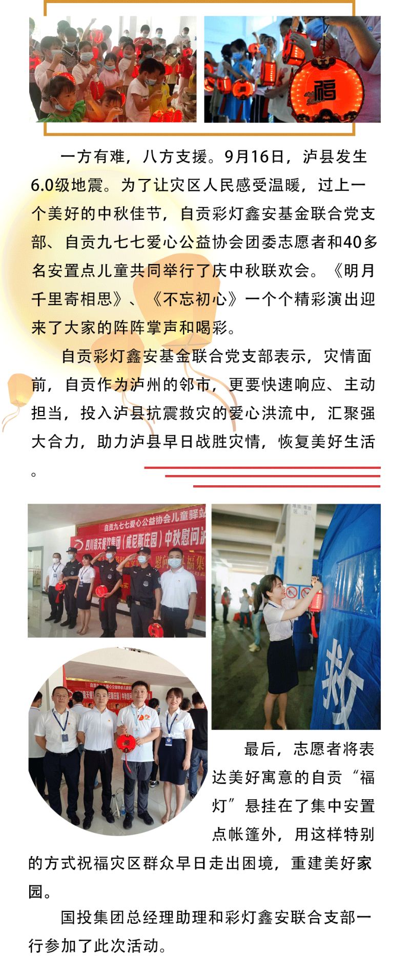 "中秋月圆人好-彩灯鑫安送福"慰问泸县福集灾区儿童